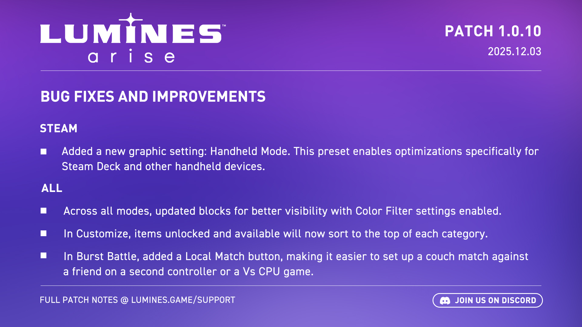 Lumines Arise Patch 1.0.10 (2025.12.03)